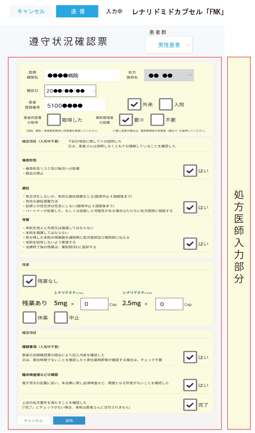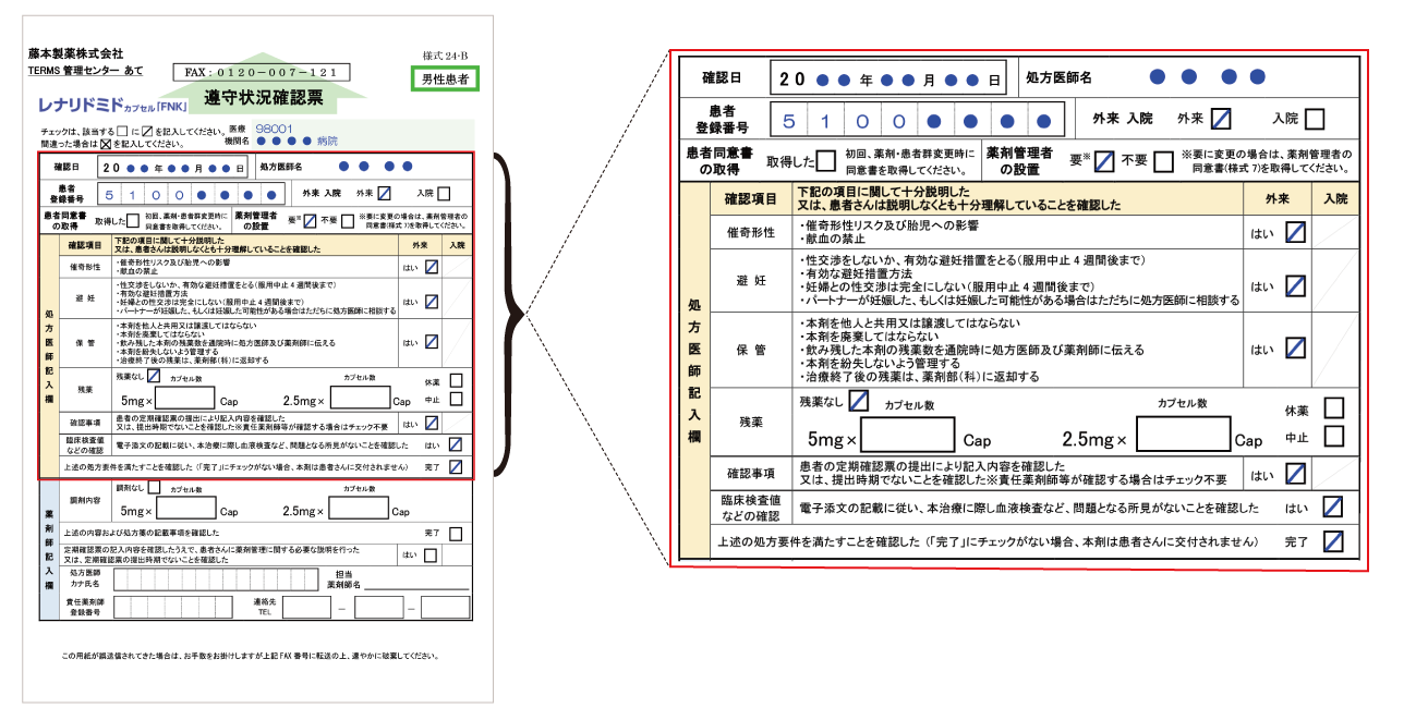 レナリドミドカプセル「FNK」 遵守状況確認票について