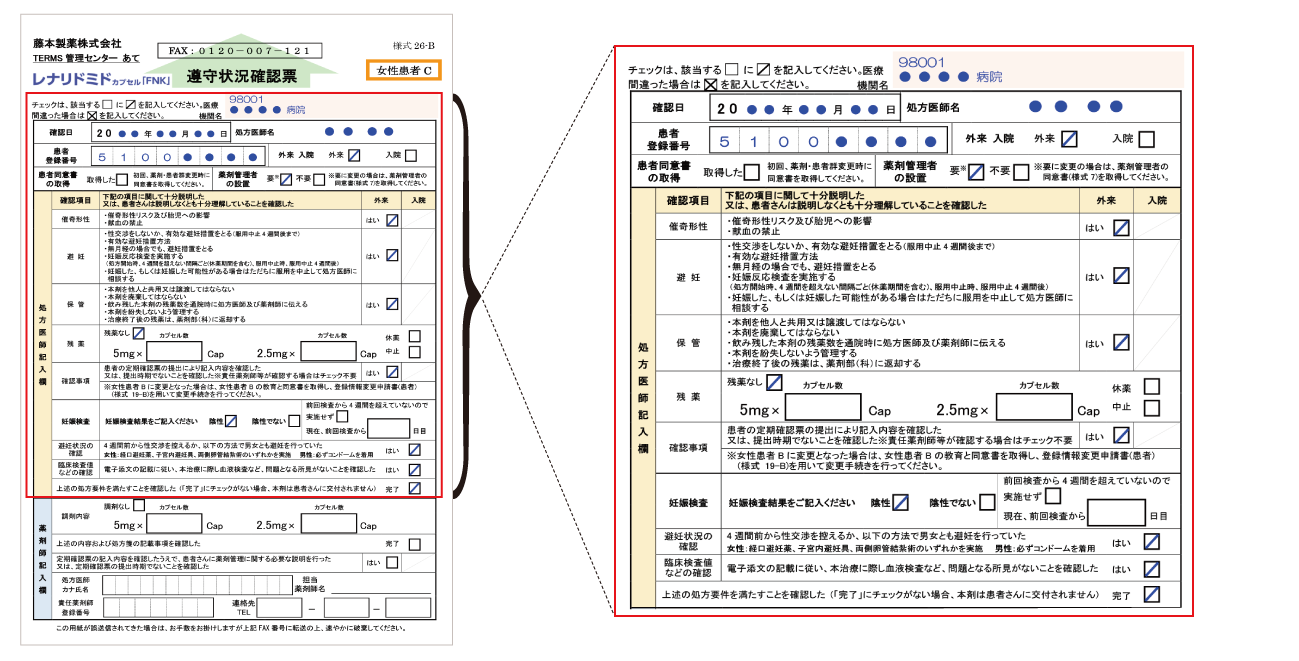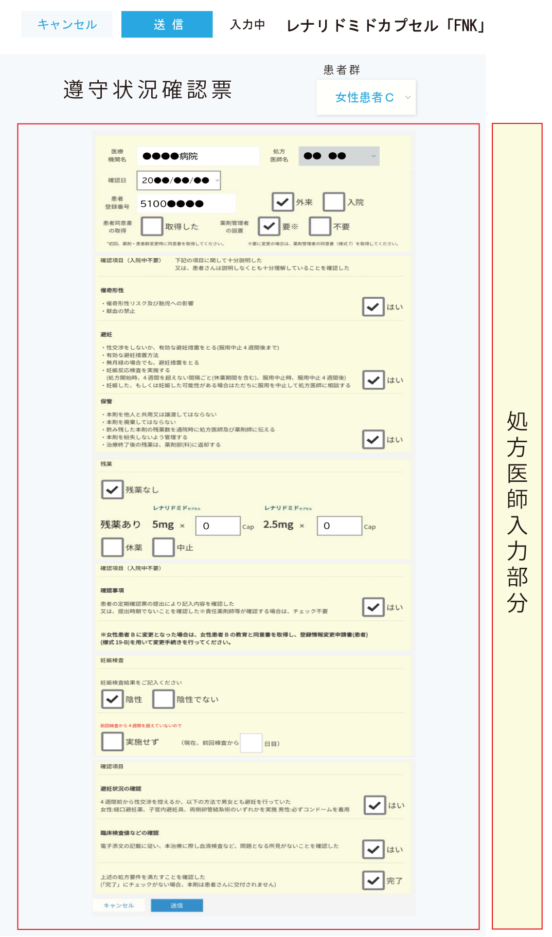 ※『遵守状況確認票』処方医師確認事項欄の、確認項目を相互確認してください。